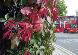 Clematis growing over railing Marylebone Street, W1